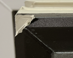 Painted Weld LinesThe corners of the frame and sash are welded together. After the wedling operation is complete, the weld seam will be painted to match the color of the laminate. There will be minor variations to the paint applied to each corner seam.